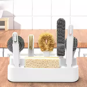 Bộ dụng cụ cọ rửa đa năng thay đầu gồm nhiều loại đầu cọ với chất liệu khác nhau (sợi nhựa, sợi cước, thép không gỉ, bọt biển…), đi kèm tay cầm dài tiện lợi và hộp đựng gọn gàng. Mỗi đầu cọ có thể tháo lắp nhanh chóng, phù hợp để vệ sinh nhiều loại bề mặt và vật dụng khác nhau trong nhà bếp.